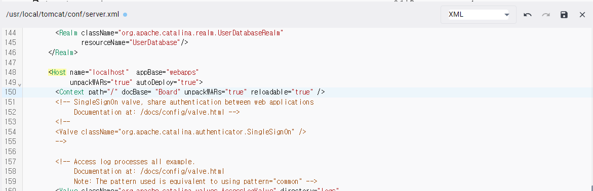 <Context path="/" docBase="Board" unpackWARs="true" reloadable="true" />