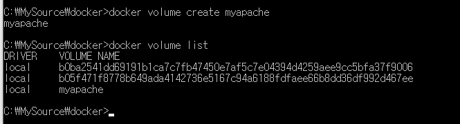 이제 apache container를 생성해주고, 생성한 볼륨인 myapache에 apache_container에 마운트할 폴더 경로를 적어준다.