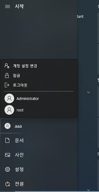 시작을 누르고, 내 계정을 누른 다음에 방금 커맨드로 생성한 Administrator 계정을 선택해주고, 위에서 설정해준 비밀번호 12345를 쳐서 계정에 접속해준다.