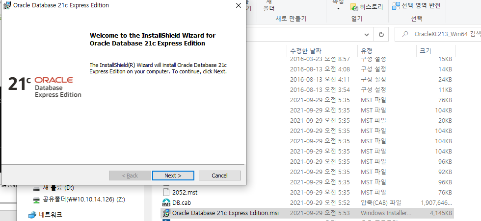 3) Oracle Database 21c Express Edition.msi를 선택하여 설치해준다.