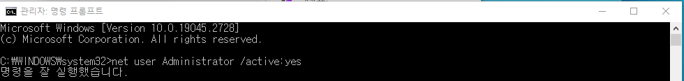 3) CMD를 관리자 모드로 실행하고, 아래와 같은 커맨드를 쳐준다.