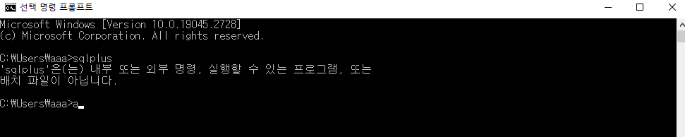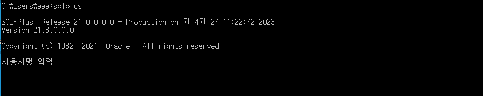 4) 다 설치가 되었으면, 아래와 같이 CMD에 들어가 sqlplus 명령어를 실행해본다.