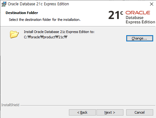 2) Oracle Database 21c Express Edition for Windows x64를 압축 해제 해서 C드라이브 폴더 안에 넣어준다. 이 때, 사용자 아래의 폴더에 압축을 해제 하는 것보다는 C드라이브 폴더 바로 아래에 압축 해제하는 것을 추천한다. 있다가 나오겠지만, Administrator 계정을 생성해서 사용할 것이기 때문에 다른 사용자 폴더에다가 넣으면 접근이 안 된다.