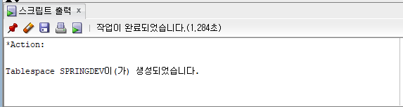 database 이름으 springdev이고, c:\oracle\data\springdev.dbf 파일에 size 500mb를 설정해주었다. 또한, 500mb를 다 사용하게 되면, 끊임없이 100mb씩 저장 공간을 추가 할당해준다. 초기 저장소 공간은 128KB로 시작하고, 그 다음에는 64kb를 추가 할당하다가, 10퍼센트씩 추가해준다.
