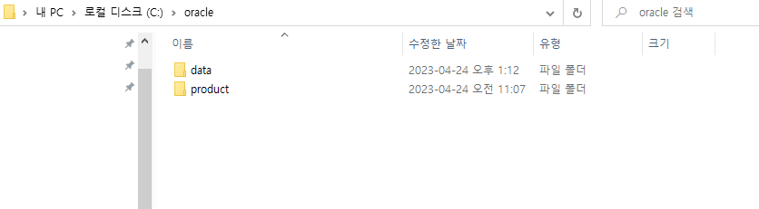 oracle 폴더 아래에 data 폴더가 있어야만 오류가 발생하지 않는다.