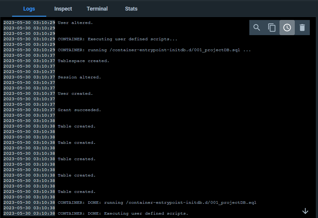 docker run --name dbcontainer -d -p 1521:1521 projectdb:latest