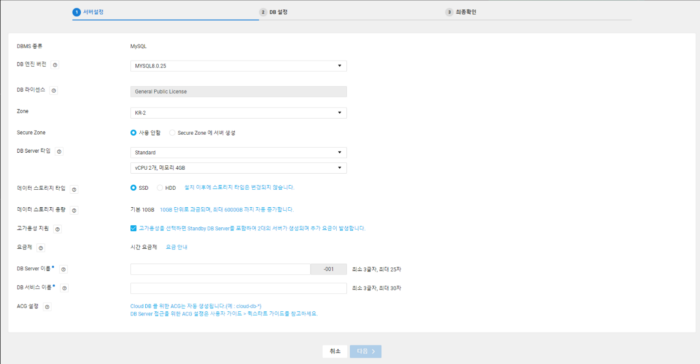 위에 고가용성 체크는 무조건 빼준다. 서버 두 개 설치해서 돈을 더 청구하려는 네이버의 간악한 속셈이다.