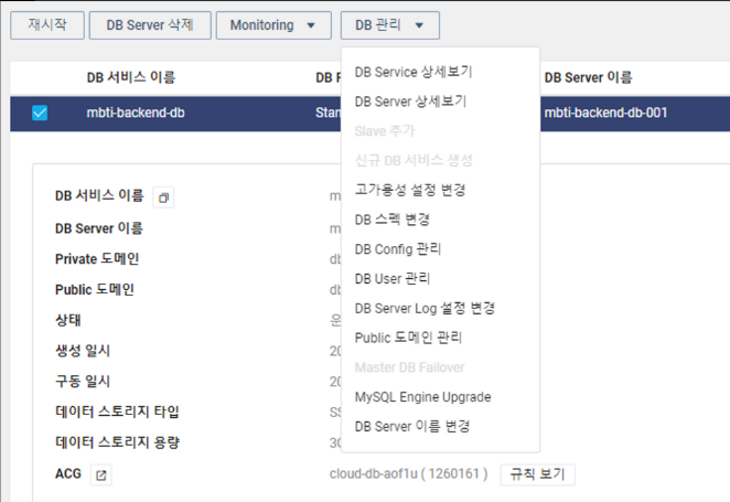 서버가 다 만들어지면, 아래와 같이 뜨는데 ACG를 눌러서 DB에 접속할 수 있는 IP를 설정해줘야 한다.