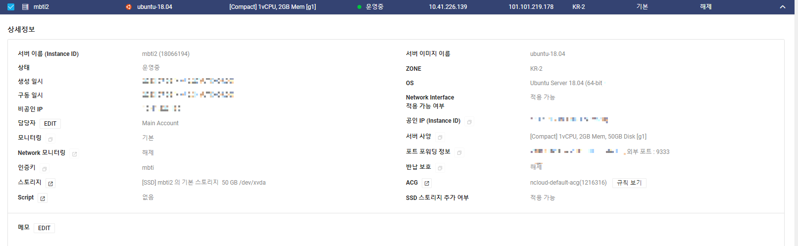 일단은 포트 포워딩 정보에서 서버 접속용 외부 포트 9333번임을 기억해야 한다.