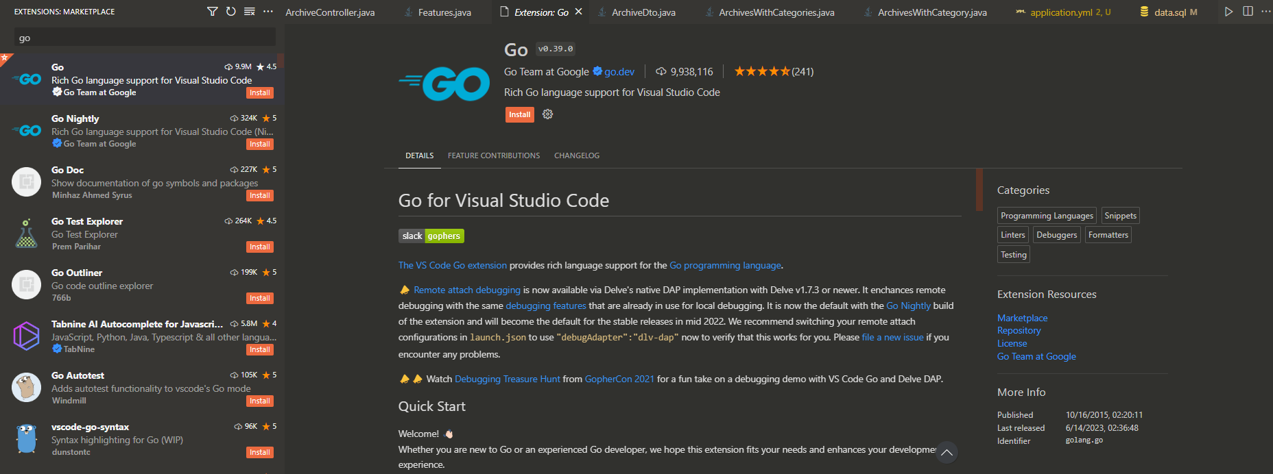 Visual Studio Code에서 Go로 작업할 때 유용한 Extension인 Go만 설치하면 일단 진짜 끝이다.